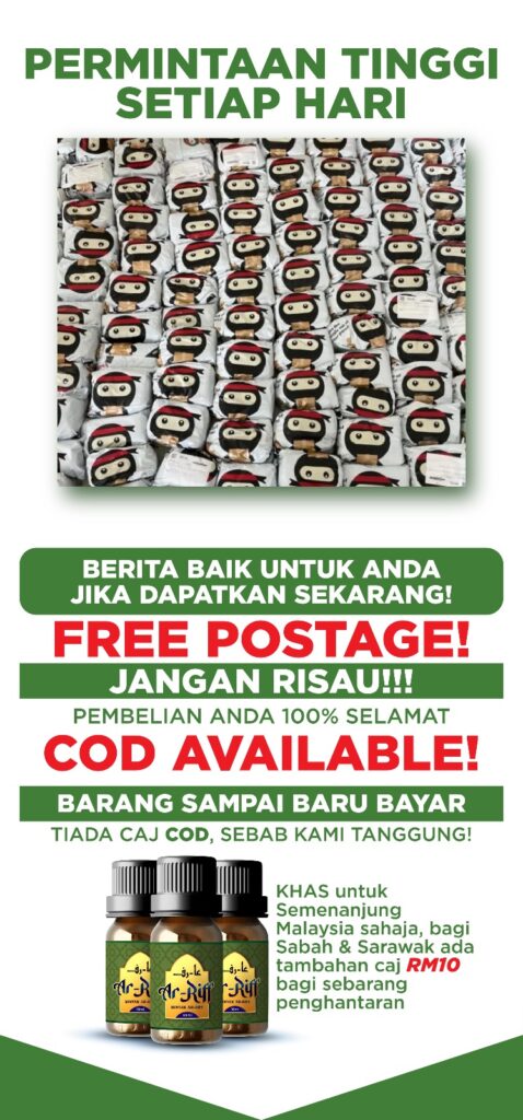 *PENAFIAN: Keberkesanan produk ini bergantung kepada kesesuaian individu. Setiap hasil dari penggunaan adalah berbeza bagi setiap individu. Produk ini akan memberi kesan terbaik sekiranya pengguna mengamalkan dengan cara betul berdasarkan banyak testimoni yang diperolehi. Pengguna dinasihatkan menggunakan produk ini seperti arahan pada produk. Namun kami tidak bertanggungjawab jika sebarang masalah/komplikasi berlaku kepada pengguna di atas penggunaan produk ini.