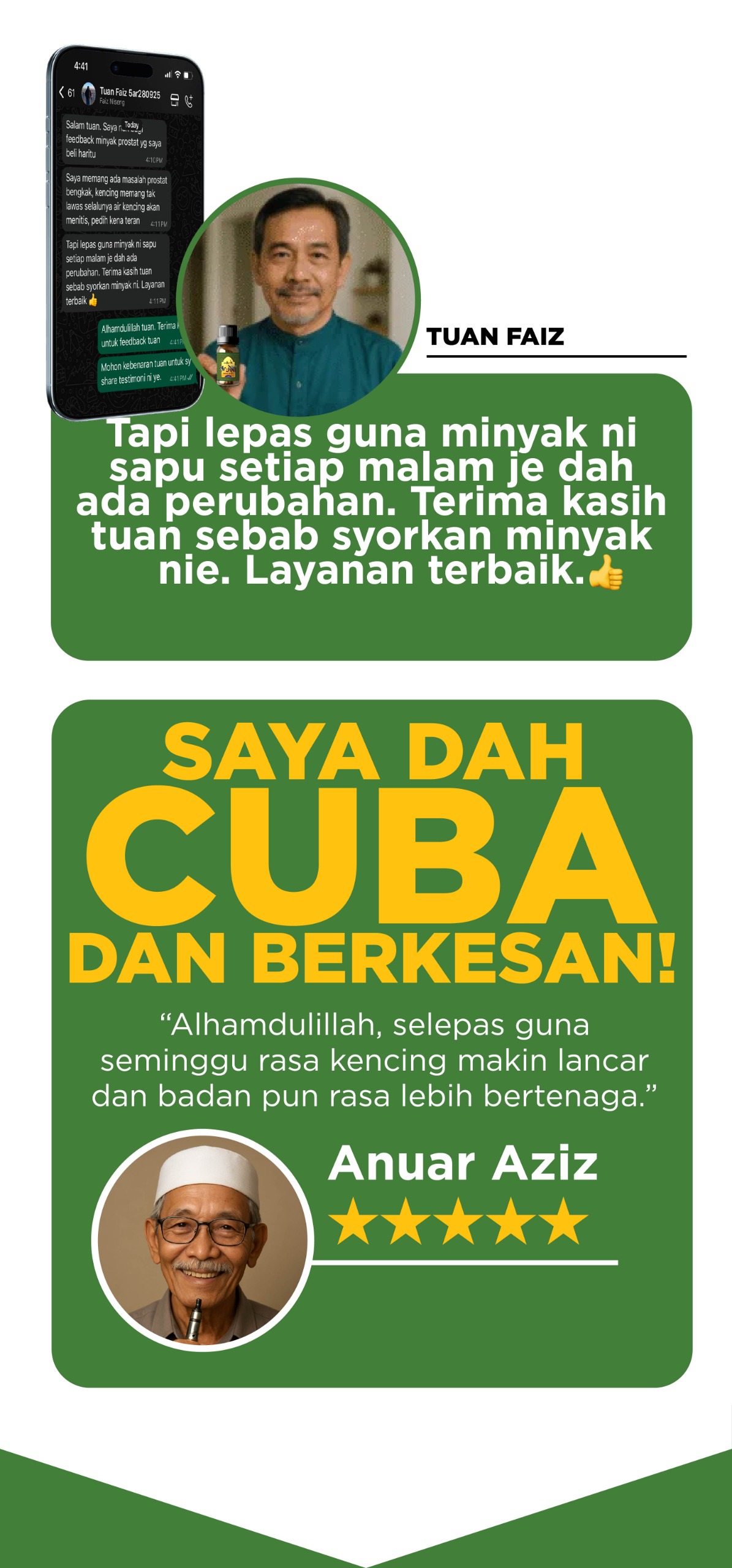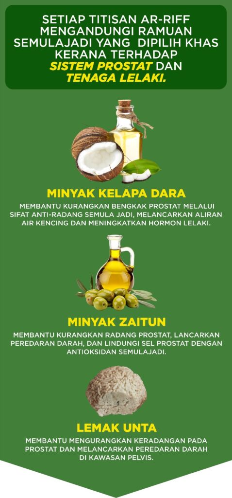 Minyak Prostat Ar-Riff hanya untuk kegunaan luaran sahaja.